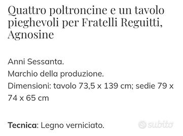 Tavolo bianco pieghevole anni 60 fratelli Reguitti Agnosine, con n. 4 sedie bianche, necessità solo di una rinfrescata di colore, per veri intenditori, prezzo poco trattabile.
