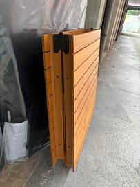 Vendo tavolo pieghevole in legno stile campeggio, robusto e pratico.