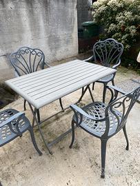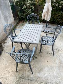 Tavolo pieghevole + sedie + ombrellone da giardino