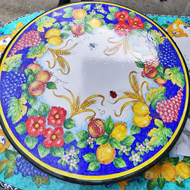 Cerchi un tavolo unico, elegante e indistruttibile? Proponiamo questo splendido tavolo rotondo in vera pietra lavica maiolicata, perfetto per ospitare comodamente 4 persone. Un elemento d'arredo eterno, ideale sia per interni che per esterni.