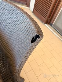 Tavolo da esterno in rattan, marca KETER. Colore marrone scuro, con piano in vetro temprato + 6 sedie. Il vetro presenta qualche graffio e una sedia ha un pezzo rotto (vedi foto). Per il resto è ottimo. Solo scambio a mano in zona San Maurizio Canavese. Per info e contatti Andrea 3408077773