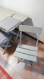 tavolo 70x 120 altezza 75cm pieghevole in legno grigio con 4 sedie pieghevoli e 4 cuscini da esterno ( idrorepellenti )