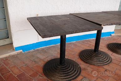 Vendo tavoli da esterno con piano in legno massiccio e piede centrale in ghisa nero . Design industriale rustico, robusti e duraturi.