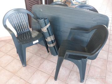 Tavolo Rettangolare in Resina da Esterno-Giardino Foro Verde 137x85 cm e 4 sedie