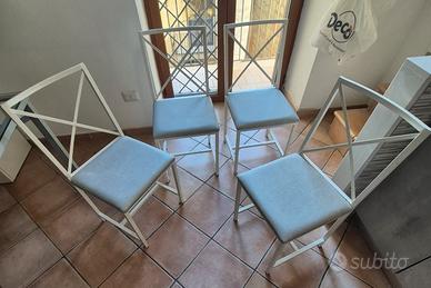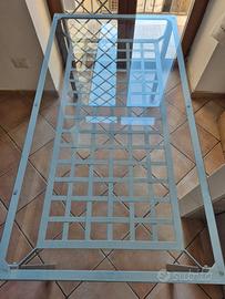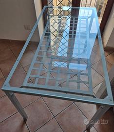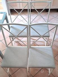 V.E.N.D.O Tavolo x 6 persone, struttura in ferro e ripiano vetro 4 sedie con struttura in ferro, pianali in legno multistrato 2 cm e rivestiti di con tappezzeria nautica, lavabile + regalo specchio con struttura in ferro 50x50 cm. Misure tavolo: 1.46 mt x 78 cm x 76 cm di altezza Misure sedie: seduta 41 x 41 cm altezza da terra fino alla seduta 45 cm altezza da terra fino alla spalliera 41 cm