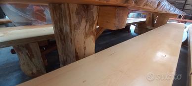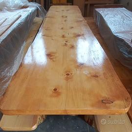 Tavolo stupendo in abete rosso massiccio in asse unica, stagionato 40 anni, di recente è stato tutto levigato a mano, passato con antitarlo, salvalegno e vernice protettiva finale mis. 380 x 90 h. 79 spessore 7 cm, nessun lavoro da fare, si completa con 2 panche comprese mis. 390 x 34 h.48 spessore 5 cm, un ottimo complemento d'arredo in soggiorno o taverna. ritiro a mano