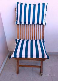 TAVOLO IN TEAK MASSELLO, ROTONDO, OTTIMA FATTURA + 4 SEDIE PIEGHEVOLI CON CUSCINI (SFODERABILI, CON ZIP E LAVABILI) SU SEDUTA E SPALLIERA (CUSCINI IN CONDIZIONI PERFETTE). FORO CENTRALE PER OMBRELLONE. IL SET NECESSITA DI INTERVENTO CON I PRODOTTI SPECIFICI PER RIPORTARLO ALLE CONDIZIONI OTTIMALI.