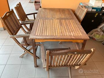 🌳 TAVOLO TEAK CON 4 SEDIE - PERFETTO PER ESTERNI