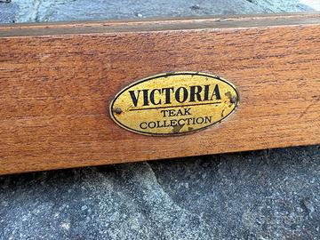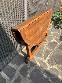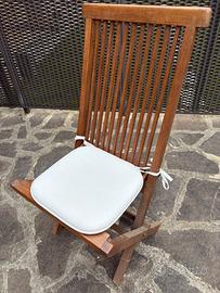 Tavolo e 4 sedie richiudibili con cuscini della Victoria Teak. Diametro 120 cm