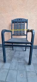 Tavolo con diametro 120 cm e 6 poltroncine in ferro. In alcuni punti la vernice si è gonfiata e va ripresa. Per facilitare il trasporto la base del tavolo si può separare dalla base. Zona Roma Nord
