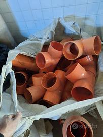come da foto vendesi grossa quantità di tee in pvc arancio da 160 mm a 3 euro al pezzo( se presi tutti prezzo da scontare) e raccordi da 200mm alcuni tee ed alcune braghe.sempre a 3 euro cad