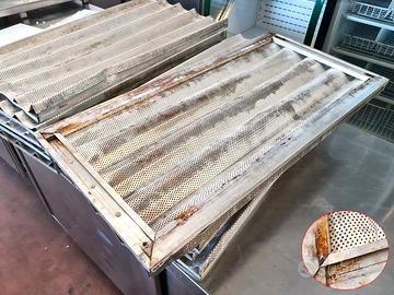 teglie forate per baguette usate, si tratta di 10 teglie da forno ondulate ben usate in alluminio per la cottura delle baguette che vendiamo a buon prezzo nelle condizioni in cui sono.