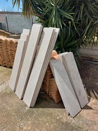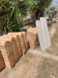 Come da foto, vendo coppi siciliani usati ma in condizioni ottimali, 0.80 € cad. più soglie in marmo Botticino, per cambio progetto, bordo stondato, 2 cm di spessore per 23 cm di larghezza, 15 € metro lineare.