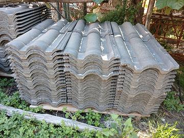 Vendesi in blocco circa 30/35mq di Tegole Coppo di Francia in cemento colore grigio. Rimosse da tetto su cui erano state posate 12 anni fa.