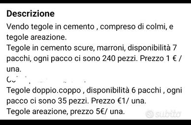 tegole in cemento misure e descrizione in foto.