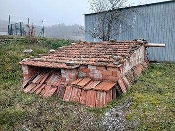 Tegole ottenute dalla demolizione di un edificio vicino a dove sono state accatastate, sono state rimosse dal tetto una ad una verificandone l'integrità.