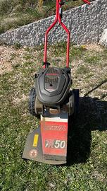 Il decespugliatore a ruote tekna TR 50 è la macchina ideale per la pulizia del vostro giardino, lavorando in modo efficiente ed ergonomico. Il Decespugliatore TR 50 ha una larghezza di taglio di 50 cm, agevola e velocizza le operazioni di pulizia di erba su superfici come aree verdi, giardini, parchi e per la pulizia di bordi e zone ove i normali rasaerba non possono accedervi. La sua conformazione compatta e leggera lo rende accessibile anche negli spazi ristretti e la sua testina di taglio “decentrata” rispetto alla carreggiata, consente una pulizia dei bordi più accurata. È la macchina alternativa ai decespugliatori classici portatili, disponendo però di più potenza e larghezza di taglio e non da meno, lavorando con più comfort essendo semovente su ruote da 280 mm di diametro. È equipaggiata con un potente motore a benzina 4T e di una trasmissione meccanica monomarcia per avanzare anche su terreni leggermente sconnessi senza difficoltà. La testina di taglio può ospitare 2 fili doppi di nylon fino a 5 mm di diametro max per una migliore efficacia di taglio. Tutto ciò si traduce in efficienza di lavoro in modo sicuro ed ergonomico! E stata acquistata nel 2025 ed e’ stata usata pochissimo. Solo Consegna a verona sud.
