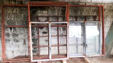 Telai in acciaio con finestre a due ante per serra, garage, deposito legna, tettoia, ecc. Tutte le finestre misurano 115cm x 115cm.