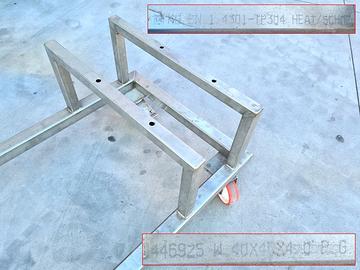 telaio inox carrellato usato, si tratta di una struttura carrellata in acciaio inossidabile adatta per ambienti: alimentari, laboratori, magazzini, etc.