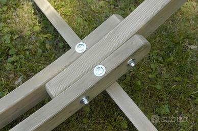 Realizzata con legno d’abete proveniente da foreste europee sostenibili e impermeabilizzata con impregnante, nonché la ferramenta in acciaio galvanizzato, garantiscono un utilizzo per molti anni.