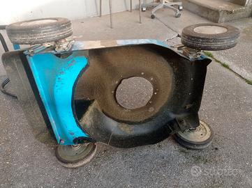 Può essere utile nel caso uno abbia un tosaerba marcio o rotto ma col motore ancora funzionante. Questo è sano e molto robusto, con otto regolazioni di taglio, adatto anche per erba piu alta in quanto ha il passaggio in uscita molto ampio. Lascio insieme la sua lama di 45 cm e il mozzo per adattarlo al motore. Per il resto il 95% dei motori si adatta su tutti i tipi di telai