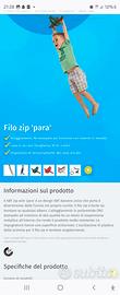 Zip wire lunghezza 30 metri. Si puo' usare piu' corto ovviamente, Usato molto poco. sempre smontato e riposto correttamente in luogo chiuso. sedile nuovo . il sedile e' un accessorio che si vende a parte da nuovo. io lo comprendo nel prezzo.