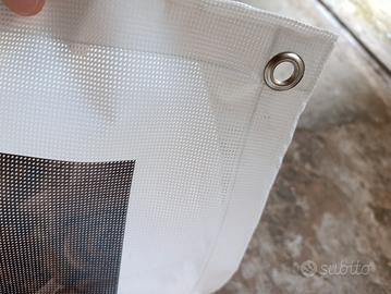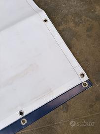 Teli ex pubblicitari bianchi sul retro impermeabili molto resistenti occhiellati su tutto il perimetro con bordo rinforzato grammatura 500 g a metro quadro , varie dimensioni vendo a 1,10 € al mq.