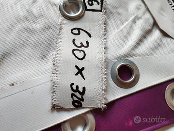 teli PVC, adatti per qualsiasi tipo di copertura, impermeabili, pubblicizzati da un lato e completamente bianchi dall'altro, occhiellati da tutti e quattro i lati, peso 530gr al mq, costo 3€ al mq