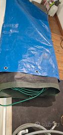 telo impermeabile dotato di asole per fissaggio adatto a piscina fuori terra da 4x2. colore interno nero, esterno verde scuro. ha il suo sacco per riporlo quando non in uso. non spedisco