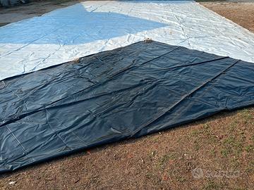 Vendo n°7 teli il plastica riflettente per coperture da esterno. Presentano dei fori lungo i bordi ( come da foto) perché erano fissati a terra. Misure 9x19 metri circa, ognuno. Da venire a ritirare personalmente.