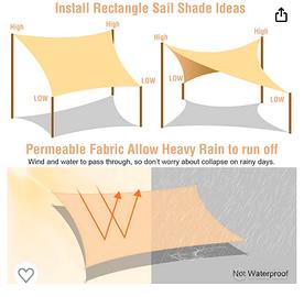 Vela Ombreggiante Rettangolare 3.6x4.8m Tenda a Vela Protezione UV 95%, densità vela 185GSM, Utilizzo: Giardino, Patio, Pergola, Cortile. REGALO CAVO, GANCI E BLOCCA CAVO