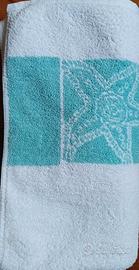 Morbido al tatto. Dimensioni: 88x178 cm. Colore: bianco con tre stelle marine su sfondo verde chiaro disegnate alle 2 estremità Peso: 900 gr.