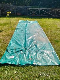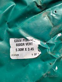Telo professionale copri piscina 650 gr Ribola con occhielli di fissaggio adoperato due stagioni per coprire la piscina nel periodo invernale Acqua perfettamente limpida a primavera Prodotto eccezionale Vendo perche' ho eliminato la piscina Si puo' adoperare anche per altri usi Spedizione a carico dell' acquirente da valutare al momento dell' acquisto