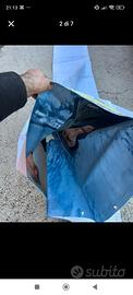 vendo telo pvc pubblicitario usato 15 giorni per un esposizione e mai più usato ..il telo ha un lato con stampata la pubblicità e un lato completamente bianco ... occhielli ogni 30 cm su tutti e quattro i lati molto spesso e resistente ( tipo telone camion ) perfetto per coprire qualsiasi cosa all esterno ma anche come copertura di pergole e gazebi ..unico difetto un buco grande quanto una moneta da 1 euro facilmente riparabile... misure precise 3.15x6.15...