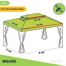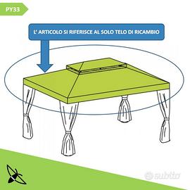✅TELO PY33: Copertura tetto per Gazebo da giardino esterno – compatibile con modello Verdelook ROMA misura 3 x 4 metri (come si vede in foto) telo per gazebo 3x4 mt + AIRVENT (tettuccio superiore) e per modelli compatibili – vedi dettagli