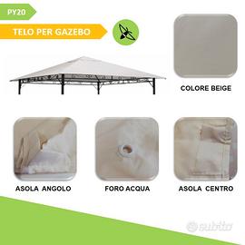 ✅CARATTERISTICHE: Materiale in tessuto poliestere 100% - 180 Gr/Mq di colore BEIGE – predisposto di ASOLE nei 4 angoli e nella parte centrale per il fissaggio alla struttura metallica del gazebo compatibile con le misure indicate nelle foto - IL TELO E' INTERO E NON DISPONE DEL CUPOLINO SUPERIORE SEPARATO (vedi foto)