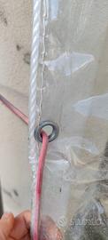 Vendo per cambio sistema di chiusura 2 teli, resistentissimi, ideale per coperture serre o chiusure verande. Spaziatura tra occhielli 50 cm. Nessuno strappo, tutti gli occhielli integri. Comprati 2 anni fa a 120 euro al telo, vendo a 70 euro l'uno, 120 tutti e due.