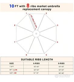 Telo x Ombrellone a 8 stecche da giardino