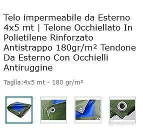 Vendo telone usato una sola volta come nuovo di colore verde e blu occhiellato su tutti i lati pesantezza vedi foto con tutte le caratteristiche