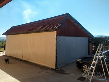 Telone impermeabile scorrevole per garage, box, copertura furgoni ecc ecc.. con ruote per binari. 2 pezzi Misure: 5,50x2,20 8,70x2,50 Prezzo nuovo pagati: 600€
