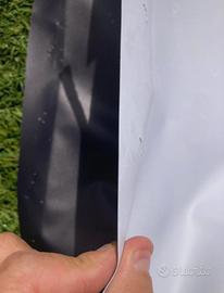 Telone ideale per coprire qualsiasi cosa all’aperto ( piscine , tettoie, legnane , attrezzature ecc. ) misura 10,30 mt x 3,70 mt , praticamente nuovo !!! Era un cartellone pubblicitario ! Colore bianco da un lato . 65€ non trattabili ! Preferibile ritiro a mano a Gallarate