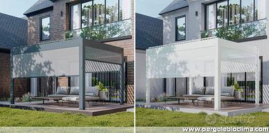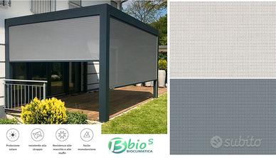 Tende a caduta con telo microforato e cassonetto per pergole bioclimatiche BioS.