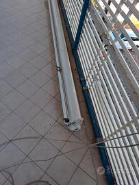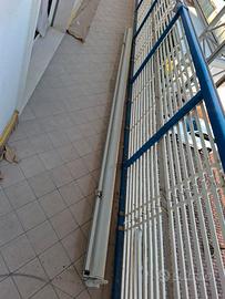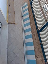 Causa ristrutturazione condominiale vendo tenda a caduta manuale, colore bianco e azzurro a righe verticali. Cassonata. Misure larghezza telo 332cm, caduta poco più di 200 cm. Ingombro totale 342 Ritiro a Lido di Savio.