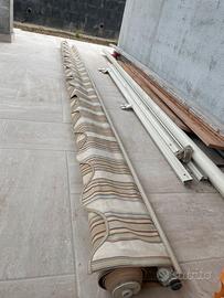 Vendo tenda a rullo tempotest con struttura propria a capanna come in foto Non necessita di nulla . Tenda senza segni di usura come altrettanto la struttura . Misure : 3,47 di larghezza Altezza Max 3.00 2,50 di profondità Altezza minima 2 metri e 0.5