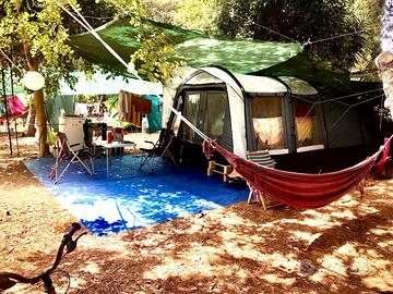 Vendo tenda a tunnel Obelink Living, 4 posti, spaziosa e robusta, ideale per vacanze in campeggio.