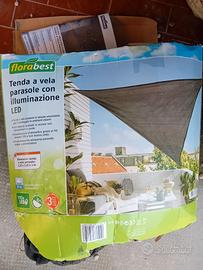 tenda a vela parasole con luci led da esterno. colore nero