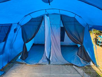 tenda da campeggio dotata di due camere,e doppia veranda.
