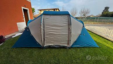 Vendo bellissima tenda da campeggio Quechua Arpenaz Family 4.2 per inutilizzo. La tenda è in condizioni perfette, usata pochissimo e tenuta con la massima cura. Caratteristiche principali: Capacità: 4 persone (2 camere separate da 2 persone ciascuna). Soggiorno: Ampio spazio centrale alto (si sta in piedi comodamente) ideale per tavolo e sedie. Montaggio: Semplice e veloce grazie ai pali colorati. Stato: Nessun segno di usura, cerniere perfette e picchetti inclusi. Prezzo: 150€ Disponibile per ritiro a mano in zona Brescia. Una vera occasione per chi vuole iniziare la stagione del campeggio con un prodotto di qualità pari al nuovo!