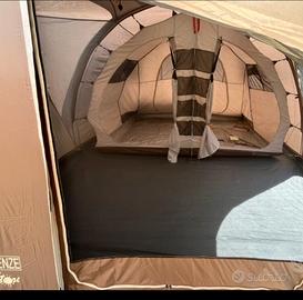 tenda da campeggio ferrino stella 4 per 4 persone con due abitacoli e ampia anticamera (gli abitacoli posdono essere uniti diventando un unico ambiente) aperture davanti e laterake entrambe con zanzariera e ulteriore apertura posteriore.