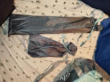 Vendo tenda praticamente nuova, usata solo una volta. Dispone di tutti i componenti, come riportato nelle foto. La tenda è abbastanza grande, come si può vedere nell'ultima immagine, dove sono indicate tutte le misure. Inoltre, dalle foto si può verificare che non mancano componenti